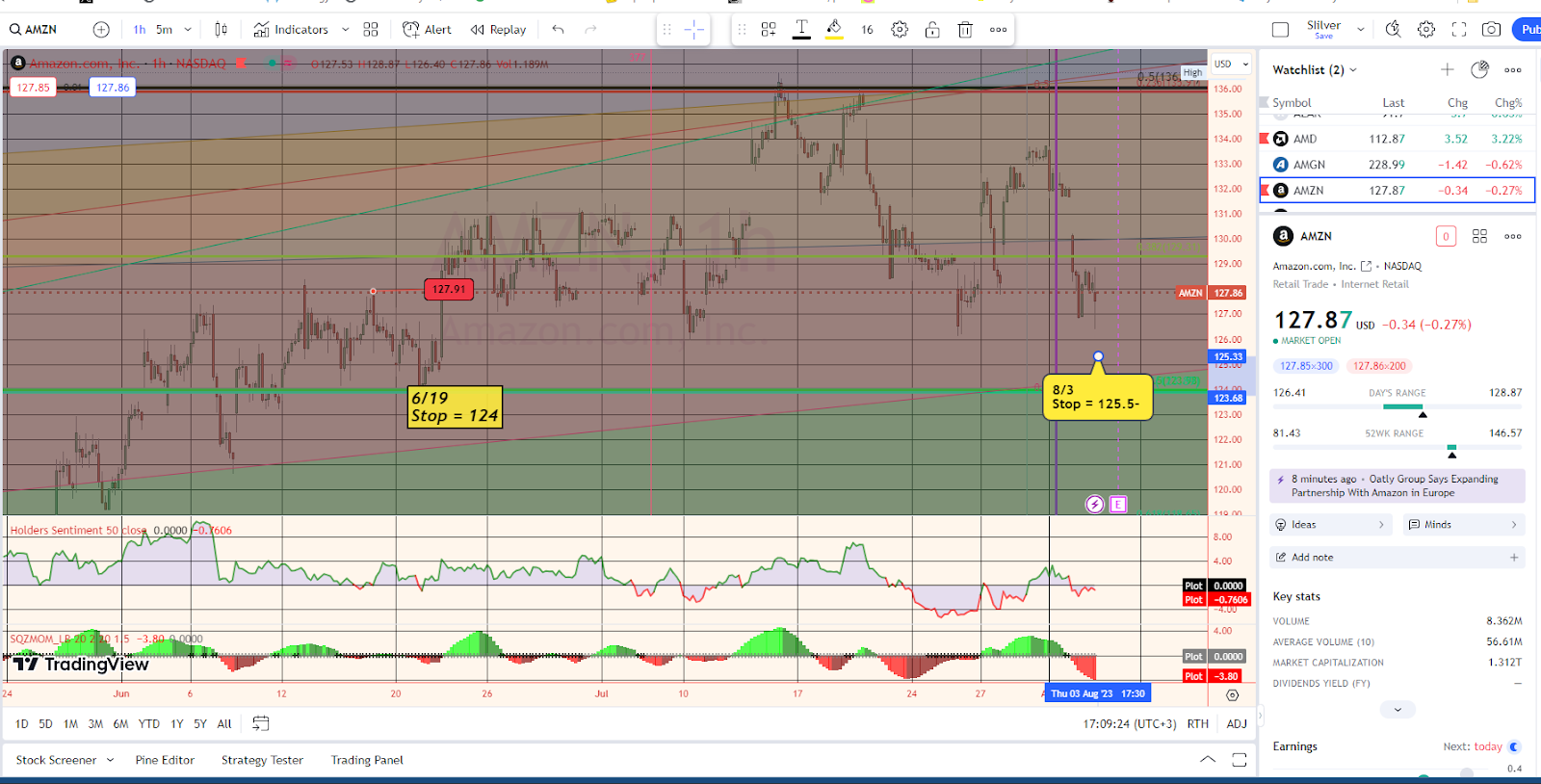 NVDA: 8.23 earnings: this is the last graph I posted ; since 7/23 it makes lower highs=falls; stop broke, short was triggered, fell to 400; now it should go above 460 to rally.