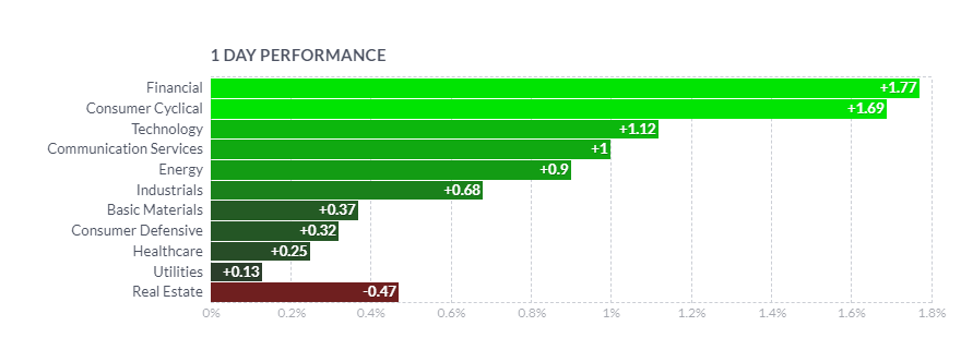 Yesterday in the USA: except for the Dow, all indices ran up.